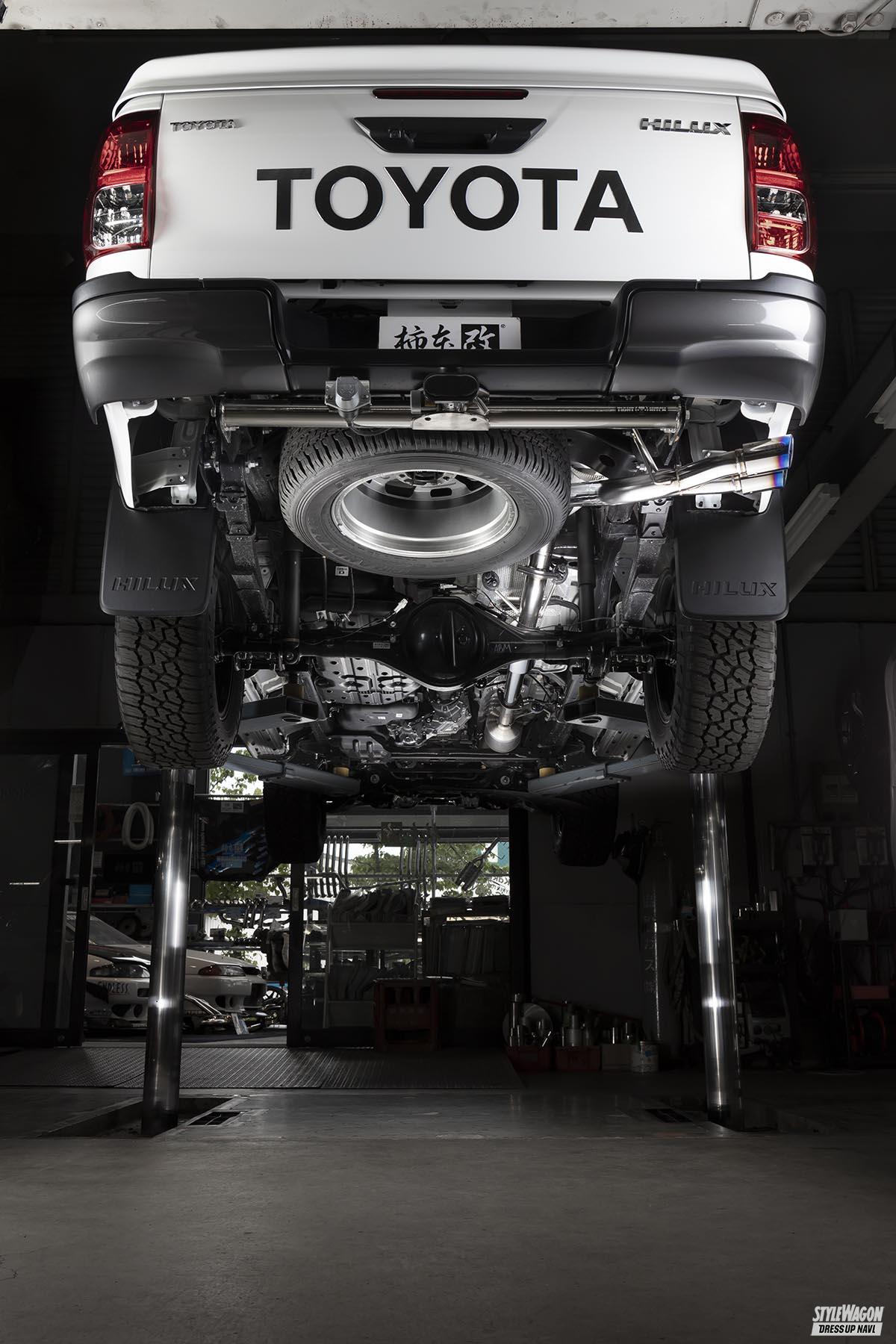 しかも写真のデモカーを見ても分かるとおり、ハイラックス用は、サイド出しレイアウトというのが特徴。