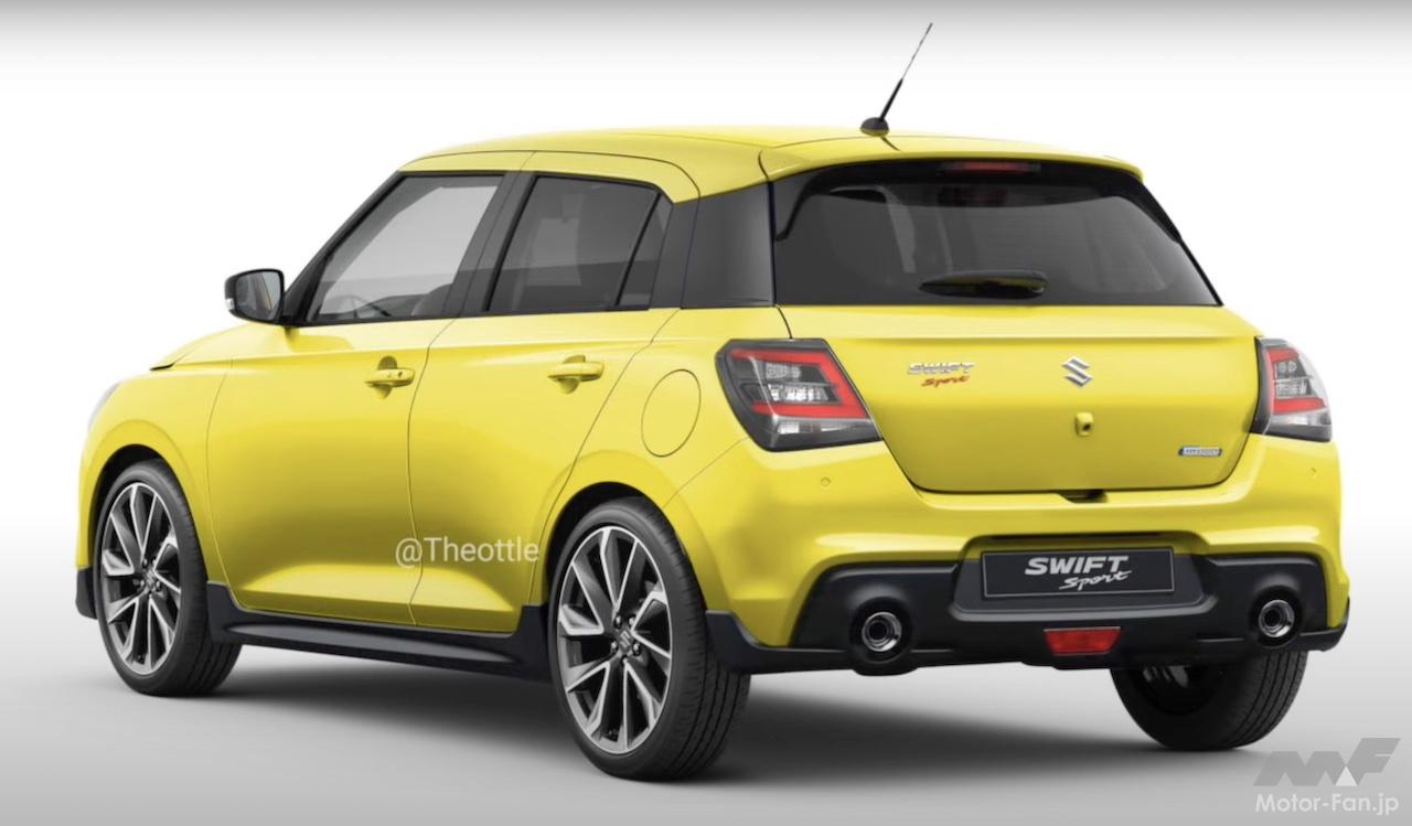 デザイナーのTheottle氏から協力を得た予想CGは、ベースとなるスイフト同様にクラム(はまぐり)風ボンネットを装備、大きなメッシュパターンを備えるグリルは拡大され、ブランドエンブレムはフード開口部とグリルの間に配置されている。