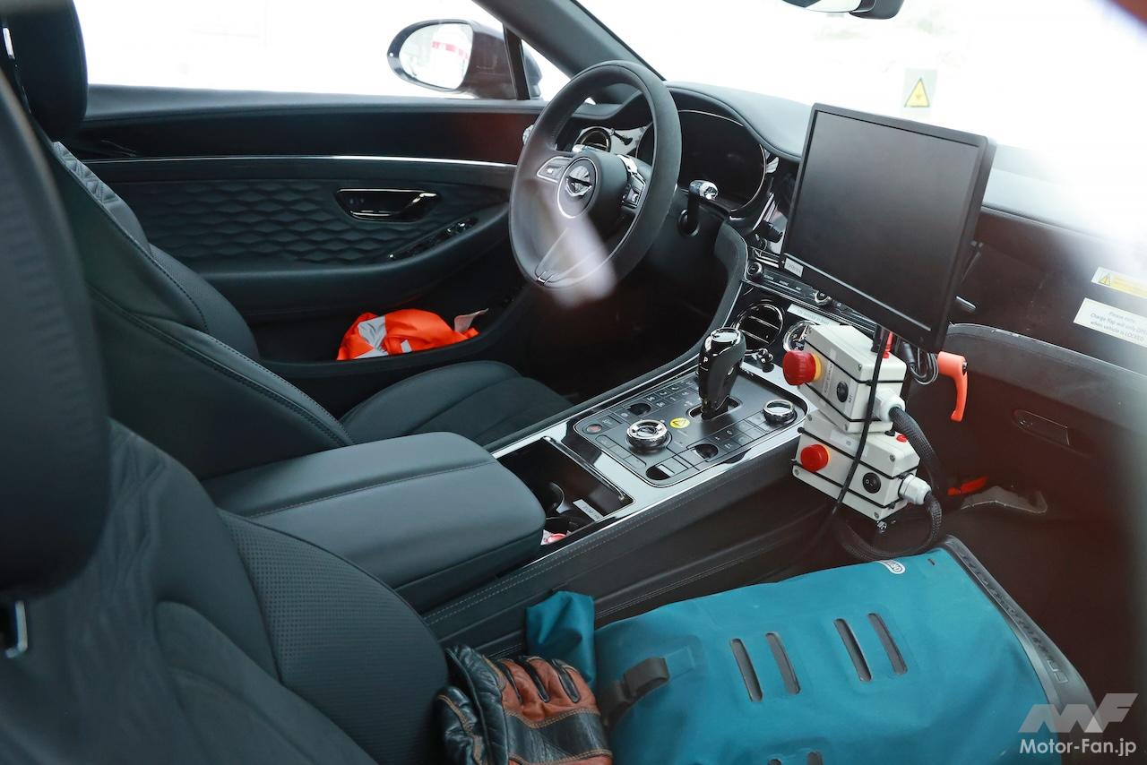 そしてなによりも、プロトタイプのリヤウィンドウやトランク、さらにはキャビン内のギヤシフター後ろにも、電動化を示すイエローステッカーが貼られていることから、このプロトタイプがベンテイガやフライングスパーのような、プラグインハイブリッドパワートレイン(PHEV)を搭載していることを示唆している。