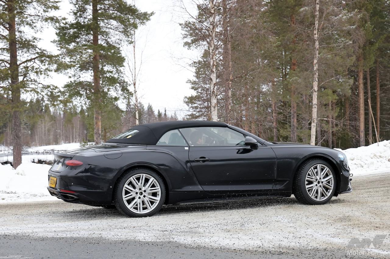 フィンランド山中で捉えたコンチネンタルGT、及び市場で最も豪華なコンバーチブルの一つであるGTC開発車両は、最新のヘッドライトを備えた進化したフロントエンドを備えている。