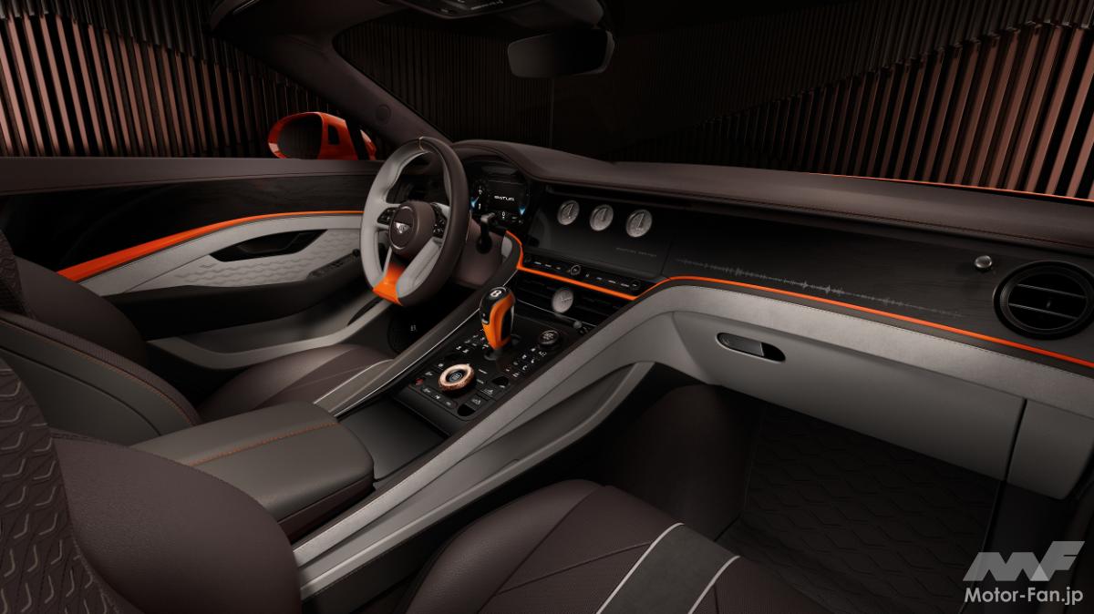 バトゥール・コンバーチブルがクーペと共有するW12パワートレインでは、吸気システムの改良、ターボチャージャーのアップグレード、新型インタークーラー、大規模な再調整により、最高出力750ps、最大トルク1000Nmを実現し、そのパフォーマンスはトップクラスだ。W12エンジンはBentleyの8速ダブルクラッチトランスミッションと組み合わされ、チタン製スポーツエグゾーストが高らかな音色を奏でる。