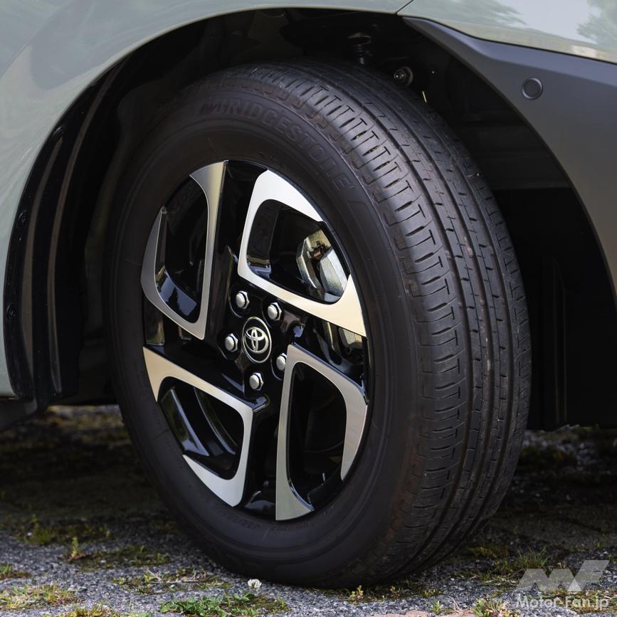 今回の取材車両はいずれも15インチアルミホイール装着車で、エア1種類、クロスター2種類が用意されており。タイヤは185/65R15サイズのグッドイヤー・エフィシエントグリップパフォーマンス2だが、これが純正装着かはまだわからない。