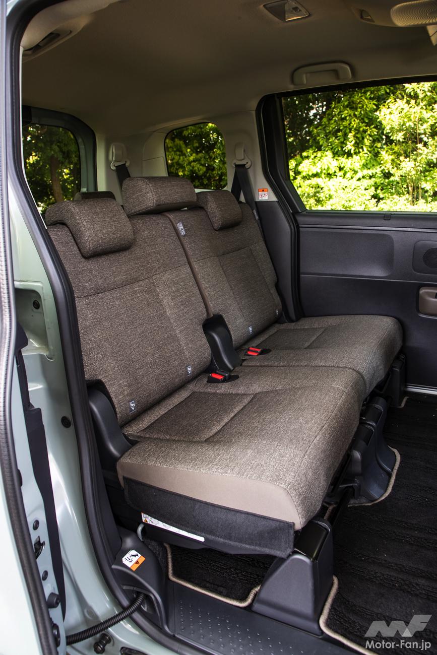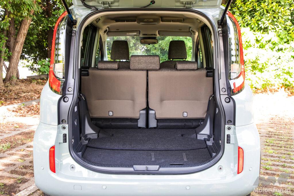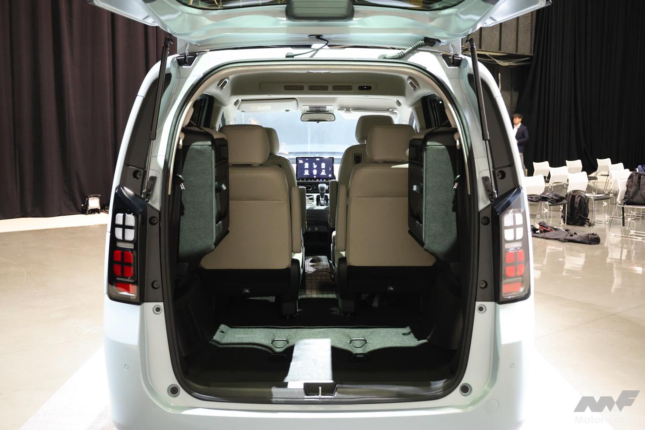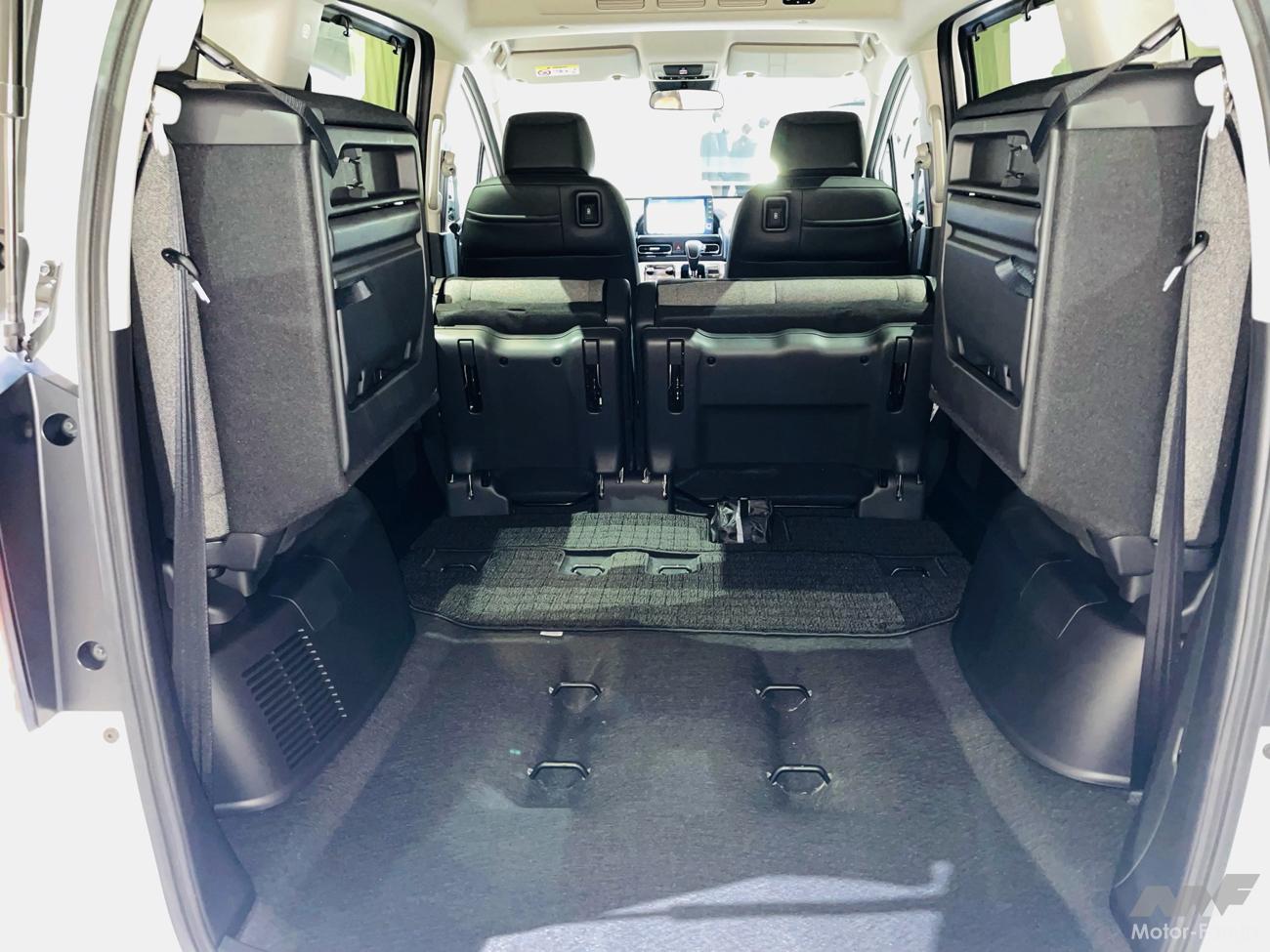 左右跳ね上げは手軽である一方、荷室の左右幅が制限される。ダイブインは格納時に2列目シートを一度畳む必要があるが、跳ね上げタイプのようにベルトで固定する手間はない。ただ、床下にシートを収納するのでフロアの高さや室内高は犠牲になる。