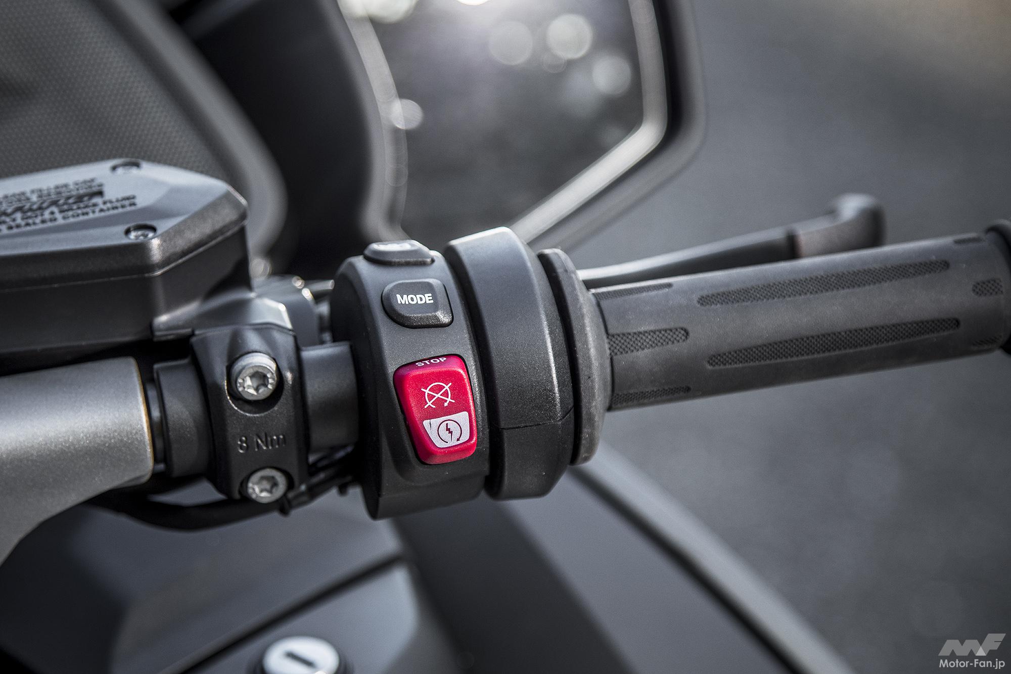 ACCの詳細解説は割愛するが、自動追従中に前方で何らかの危険が生じると警告表示や自動ブレーキ(減速)も作動し、ハザードランプも自動点滅する。またコーナー手前での自動減速にも対応するそう。おかげで航続走行中のライダーは、よりリラックスできる。