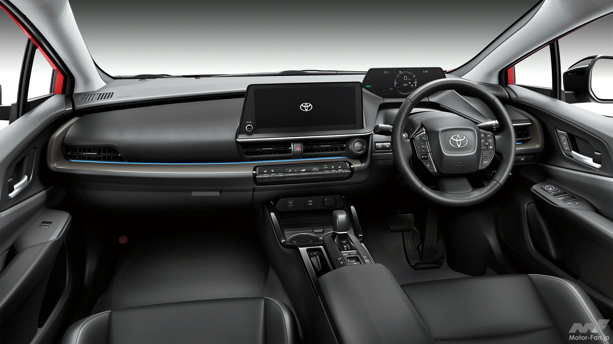 内装デザインは「⾛りのワクワク感」と「上質さ」を両⽴させたものとされ、“アイランドアーキテクチャー”コンセプトにより、圧迫感のない広々とした空間と運転に集中しやすいコックピットを両⽴。直感的に操作ができ、ドライビングを楽しめる室内空間とされています。