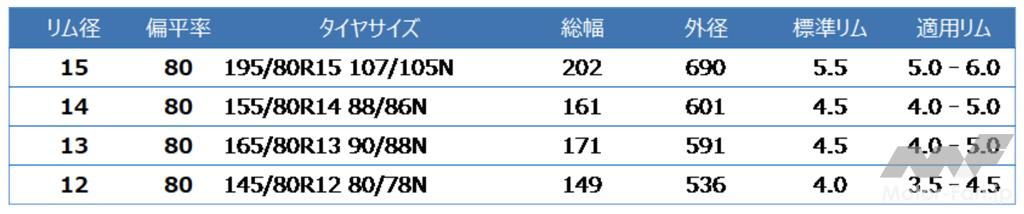 ●グッドイヤー「ベクター4シーズンズ カーゴ」サイズラインナップ