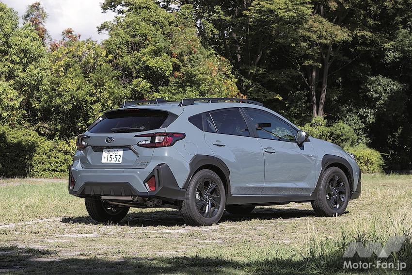 クロストレックのパワーユニットは、水平対向4気筒2.0ℓエンジンに、マイルドハイブリッドを組み合わせたe-BOXERだ。駆動方式は、前輪駆動の2WDとAWDを用意する。動力性能は2.0ℓエンジンの平均水準になる。パワフルではないが、2500rpm前後の実用域に余裕があって運転しやすい。4000rpmを超えると吹き上がりが活発になって伸びの良さも味わえる。走行安定性は、全高を1600㎜以下に抑えたこともあり、SUVでは優れた部類に入る。ステアリング操作に対する反応は自然な印象で、後輪の接地性も高いから安心感が伴う。特にAWDが注目され、前後に駆動力を配分する多板クラッチの制御が巧みなので、アクセルを戻した状態で下りカーブを曲がるときでも安定性が高まる。