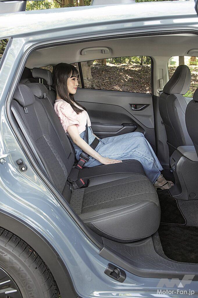 前席は従来型のXVに比べると改善され、背中から大腿部に掛けて、骨盤を中心に身体をしっかりと支える。シートのサイズにも余裕があり、身体を確実にホールドしながら座り心地は適度に柔軟だからリラックスできる。後席は床と座面の間隔が十分に確保され、窮屈な姿勢にならない。身長170㎝の大人が乗車して、後席に座る乗員の膝先には握りコブシふたつ半の余裕があり、全長は4500㎜以下でもファミリーで長距離を快適に移動できる。