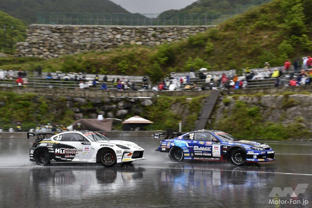 チーム・ドルーピーの松川は1本目の振り出しがうまくいかず、2本目も2コーナーで角度がつかないなどして単走通過はならなかったものの、石川は2本目に、審査区間後半の角度などで点を稼ぎ、追走進出を決めた。ただ、路面コンディションがグループによって異なったこともあり、ドライ時のような高順位はとれなかった。