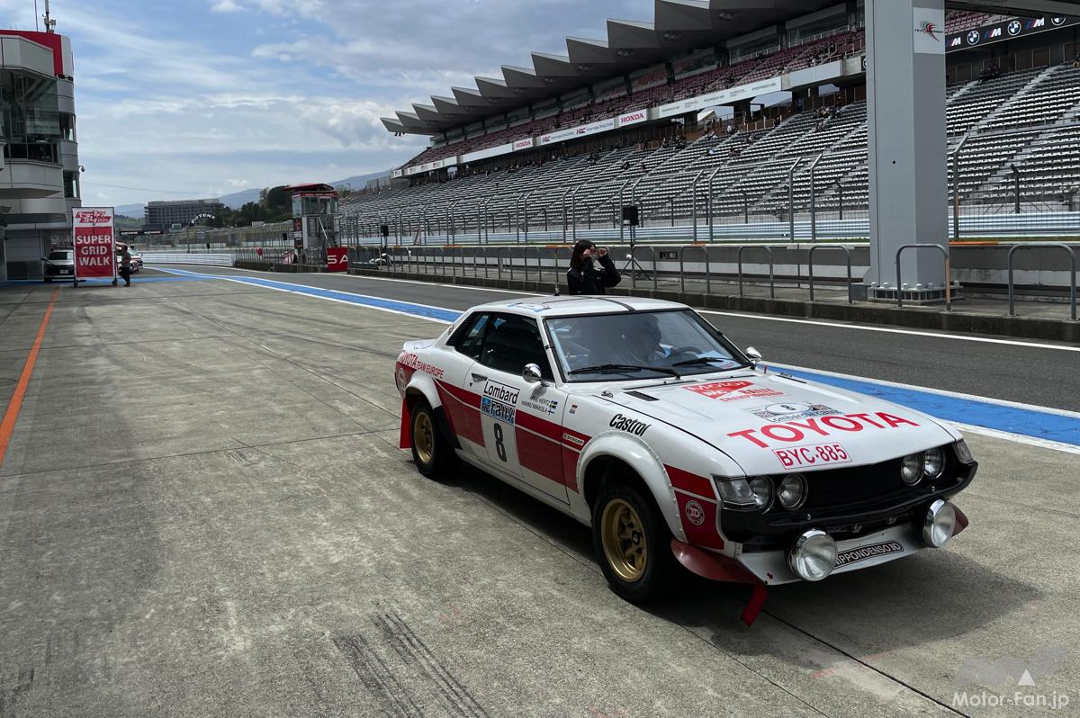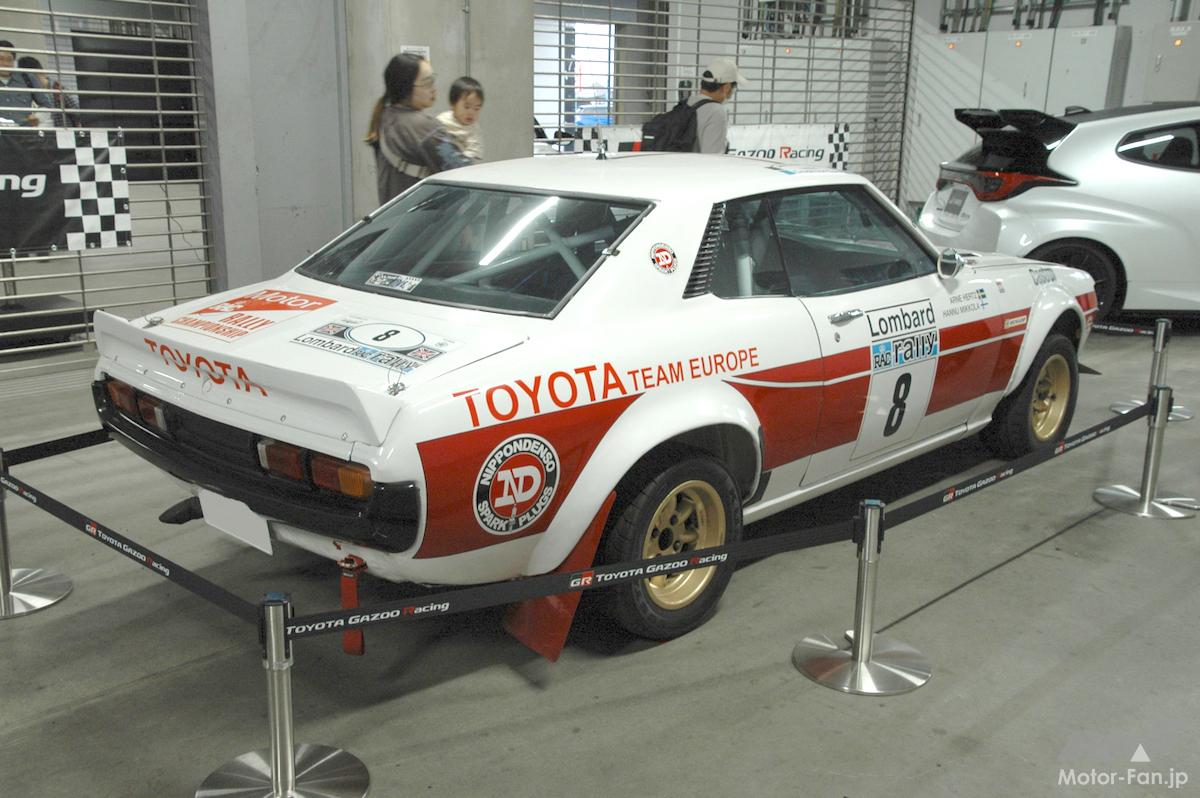 1978年からトヨタはワークスマシンをRA40型の二代目セリカにスイッチするため、MFFに展示されたこの個体はRA20型セリカ2000GT(グループ4)の最後の花道を飾ったマシンと言えるだろう。