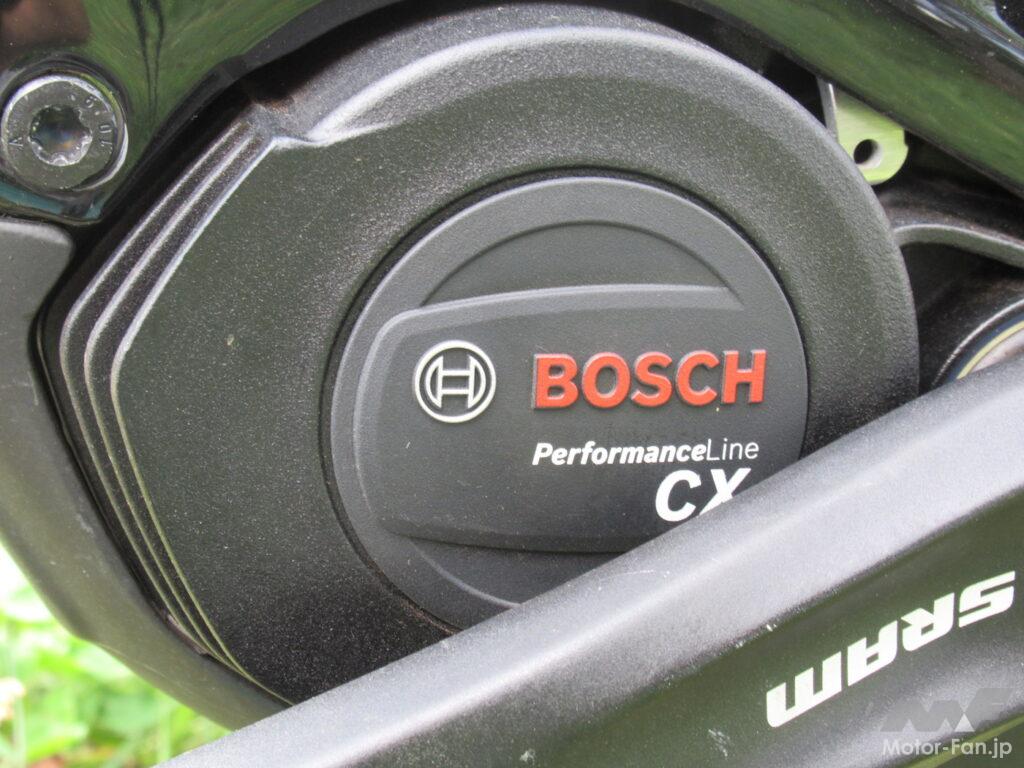アシストモードは、Eco、Tour、eMTB、Turboの4種類。この電動モーターの最大可能駆動トルクはなんと85Nmと、数値だけ見ればノンターボの軽自動車より大きい。が、もちろん実際の力の強さは時間あたりの回転力なので発生回転数が数千回転/分と、桁違いになるので到底、660ccのエンジン並みというわけにはいかない。