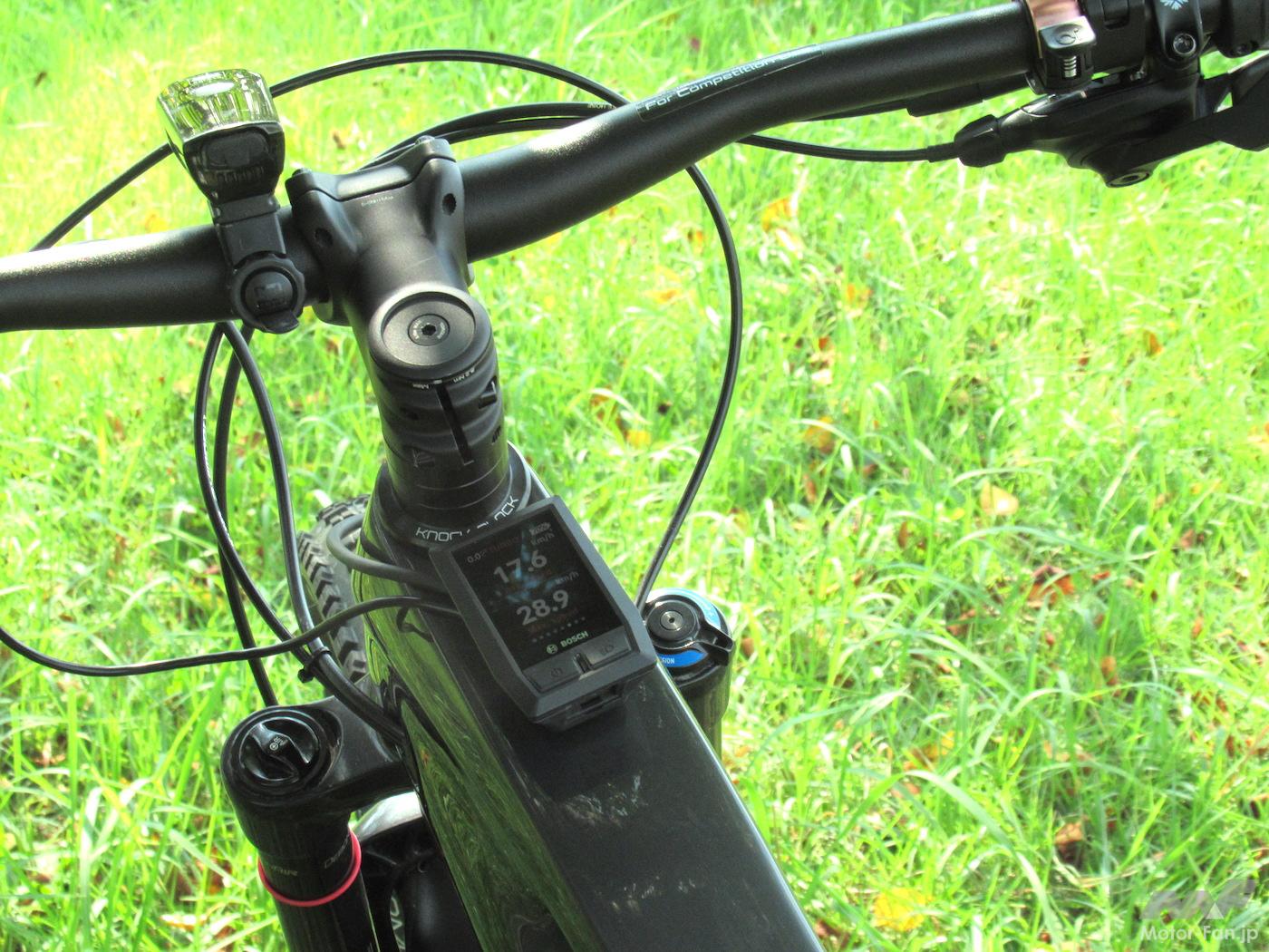アシストモードは、Eco、Tour、eMTB、Turboの4種類。この電動モーターの最大可能駆動トルクはなんと85Nmと、数値だけ見ればノンターボの軽自動車より大きい。が、もちろん実際の力の強さは時間あたりの回転力なので発生回転数が数千回転/分と、桁違いになるので到底、660ccのエンジン並みというわけにはいかない。
