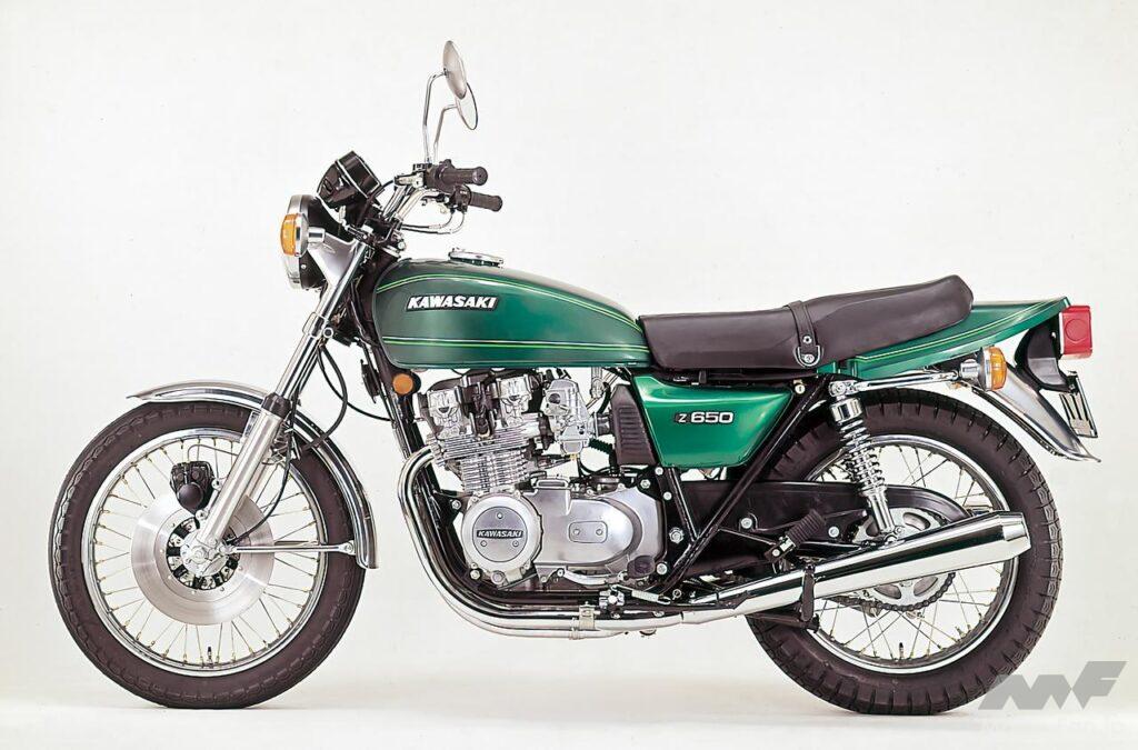 カワサキZ650は、1973(昭和48年)年から1975(昭和50年)年まで生産。排気量746ccのZⅡ(ゼッツー/Z750RS)の弟分として登場し、外観デザインはZⅡと酷似しているのが特徴だ。