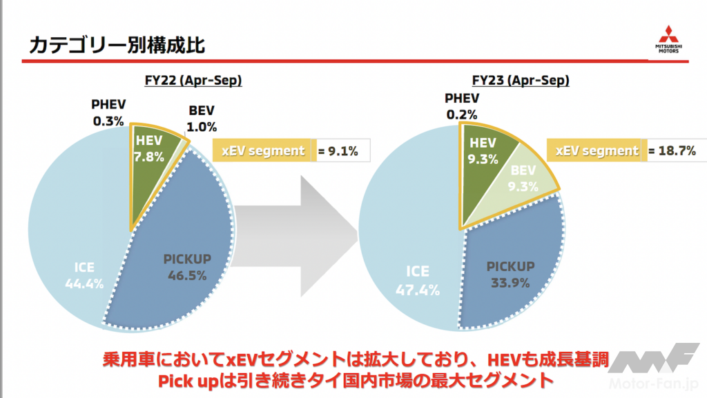 日本勢はHEVをタイで生産拡大する。今年に入って三菱自動車は、タイで「エクスパンダー」「エクスパンダークロス」のHEV生産を立ち上げた。すでに「アウトランダーPHEV」を生産しており、電池セルを日本から輸入しタイで電池パックに仕上げている。「エクスパンダー」用も同じ電池セルを使う。