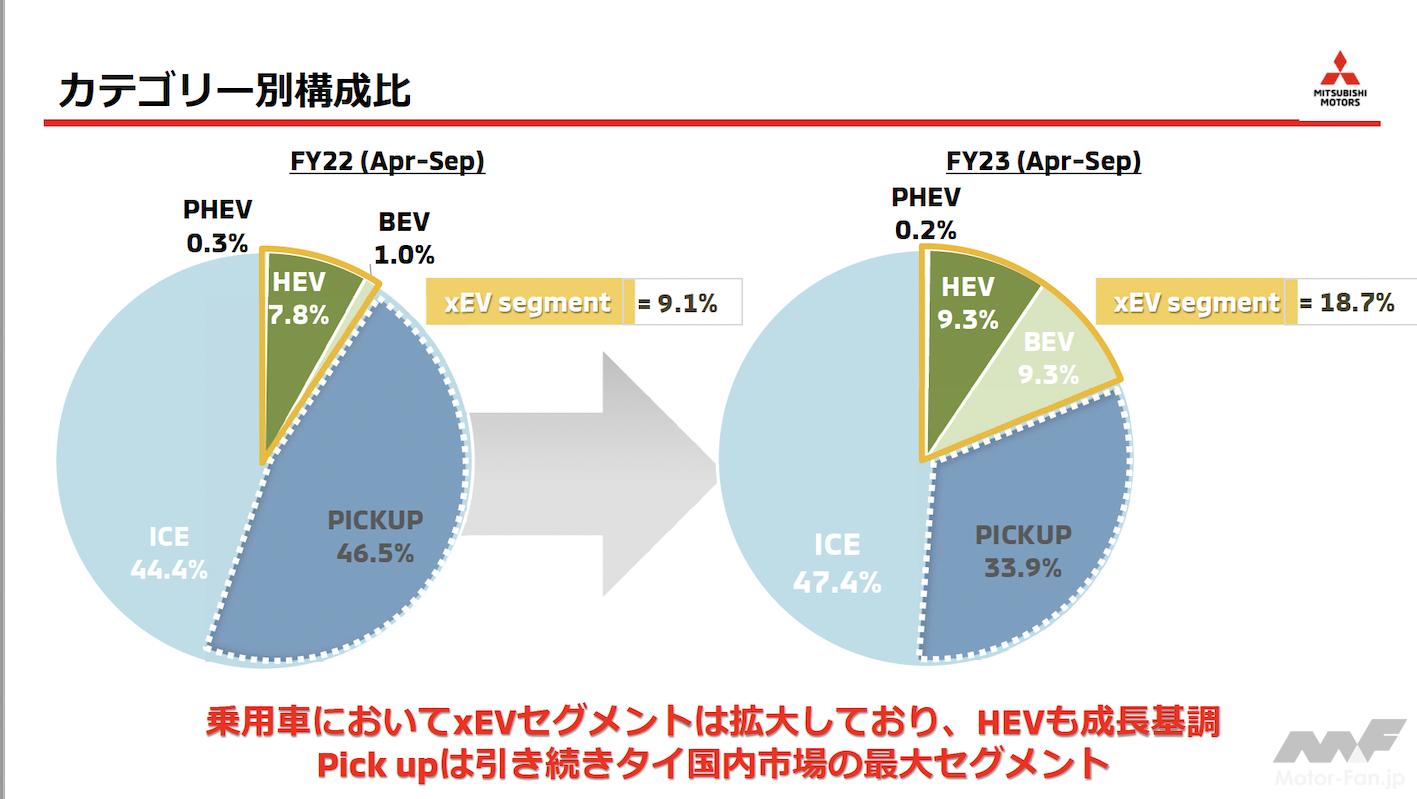 日本勢はHEVをタイで生産拡大する。今年に入って三菱自動車は、タイで「エクスパンダー」「エクスパンダークロス」のHEV生産を立ち上げた。すでに「アウトランダーPHEV」を生産しており、電池セルを日本から輸入しタイで電池パックに仕上げている。「エクスパンダー」用も同じ電池セルを使う。