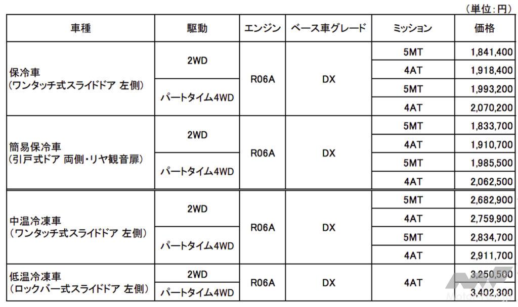 商用特装車『ワークユースビークル』もあわせて一部仕様変更