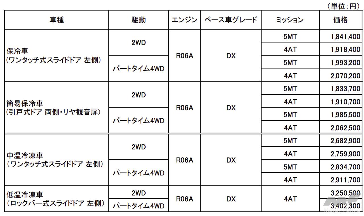 商用特装車『ワークユースビークル』もあわせて一部仕様変更
