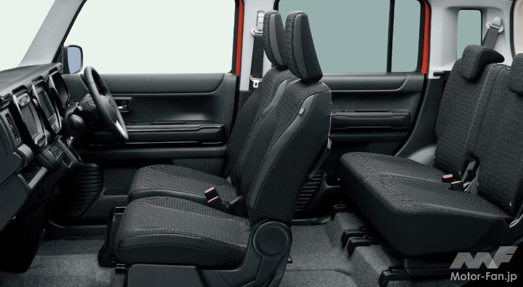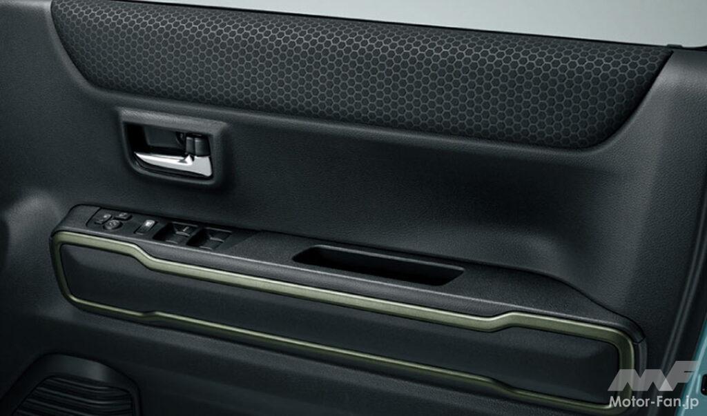 さらにHYBRID XとHYBRID Xターボは、エクステリアにHUSTLERアルファベットエンブレムやメッキフォグランプガーニッシュ、メッキドアハンドルを採用したほか、インテリアにはダークグレーのレザー調&ファブリックシート表皮やブラックパールのインパネカラーガーニッシュなどを採用し、質感をさらに高めている。