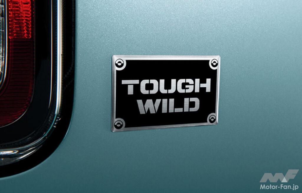 このたび新たに設定された「ハスラー タフワイルド」は、エクステリアに専用フロントグリルやメッキバンパーガーニッシュ、タフワイルドエンブレムやブラックメタリックの15インチアルミホイール、ルーフレールなどを採用。タフで存在感のあるデザインに仕上げられたのが特徴だ。