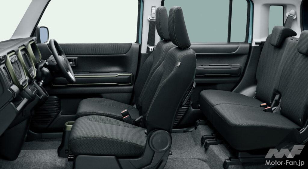インテリアは、撥水加工を施したファブリックシート表皮やドアトリムクロス、マットカーキを基調とした専用のインテリアカラーを採用し、アクティブな印象を持たせている。