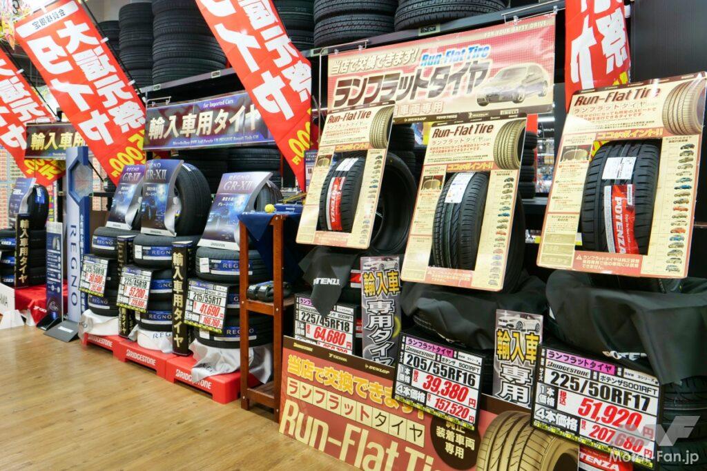 輸入車に乗るユーザーも多い同店では、ランフラットや承認タイヤなどの在庫も充実させる。