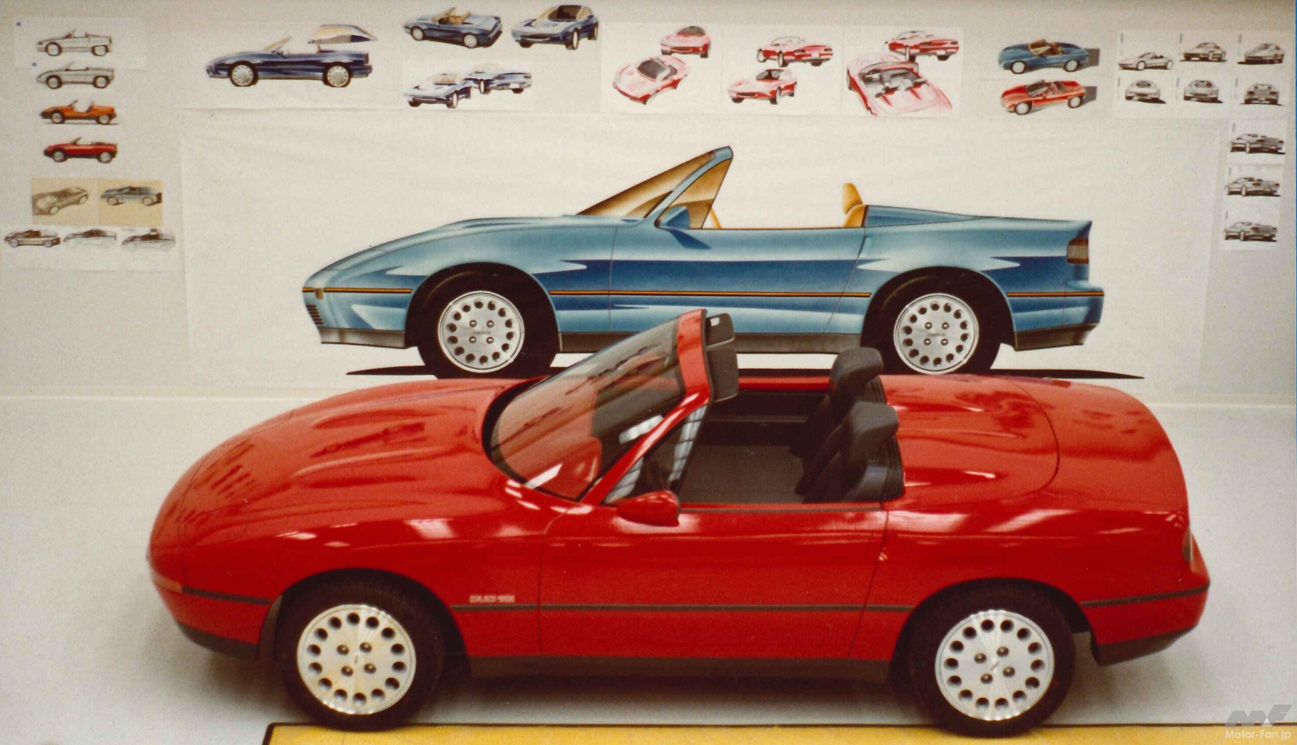 MANAでライトウェイトスポーツのプロジェクトが始まったのは83年のことだ。コードネームは「P729」。何人かのデザイナーがスケッチを描いたなか、福田成徳MANA副社長(後のデザイン本部長)が選んだのは八木将雄の提案だった。八木は81年2月からMANAに出向していた。