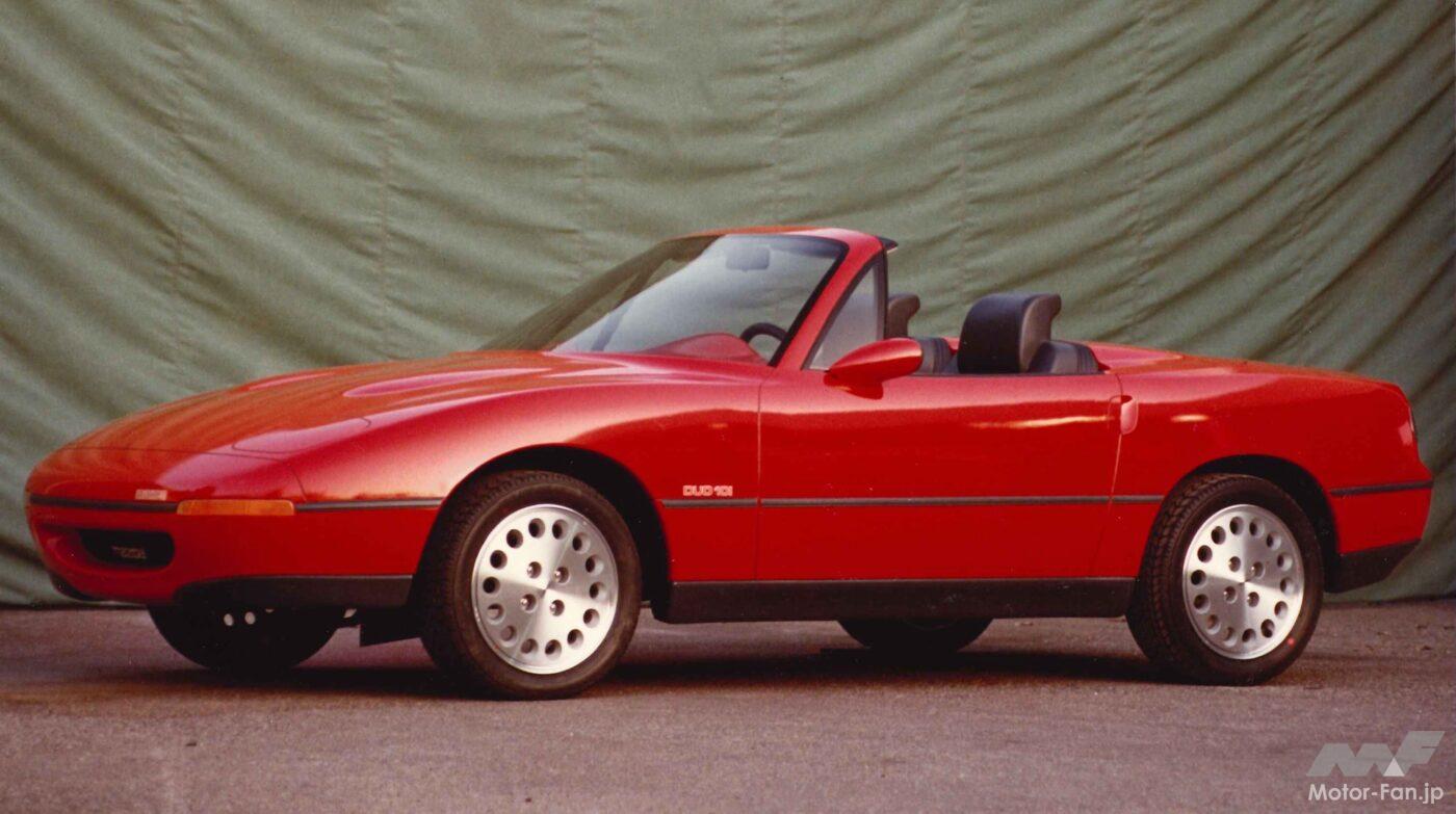 ただし八木と梶山がMANAで手掛けたP729はあくまで先行開発段階のスタディであり、長い「前史」のなかでは1次案という位置付けになる。その後、八木の後任として84年9月にMANAに出向した林浩一が2次案、さらに3次案の1/1モデルを開発。その3次モデルをベースに、本社デザイン部の田中俊治がチーフデザイナーとなって「日本の美意識」を盛り込み、リファインして誕生したのが量産NAのエクステリアデザインである。