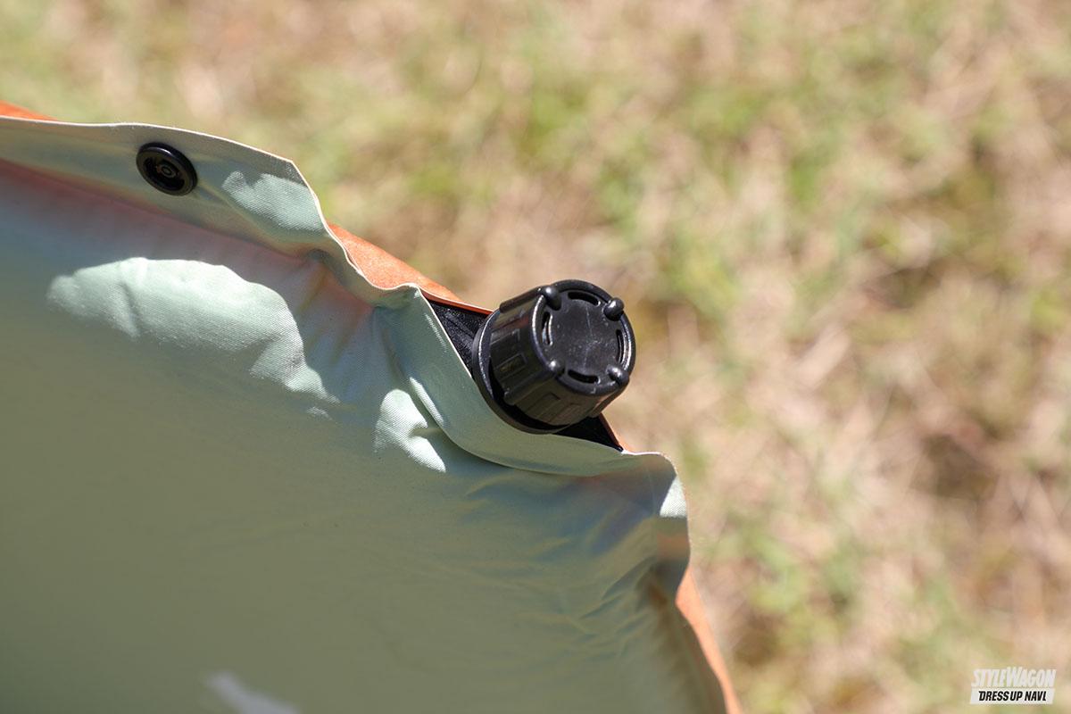本体角に付属のワイドバルブを開くだけで空気を自動注入開始。逆に空気を抜くのも早いってワケ。