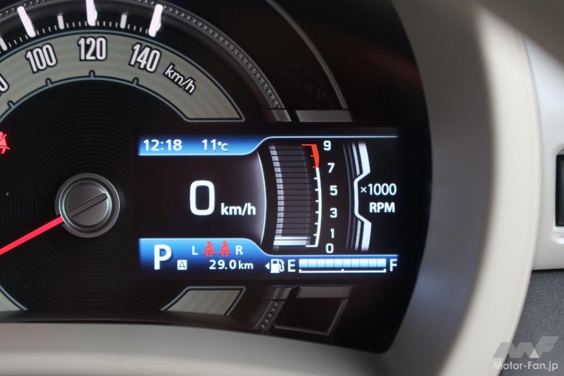 スズキ・ワゴンRスマイル Hybird X 全長×全幅×全高:3395mm×1475mm×1695mm ホイールベース:2185mm 車重:870kg サスペンション:Fマクファーソンストラット式/R トーションビーム式 駆動方式:FF エンジン 形式:直列3気筒DOHC 型式:R06D型 排気量:657cc ボア×ストローク:61.5mm×73.8mm 圧縮比:12.0 最高出力:49ps(36kW)/6500pm 最大トルク:58Nm/5000rpm 燃料供給:PFI 燃料:レギュラー 燃料タンク:27ℓ モーター 直流同期モーター(2.6ps/40Nm) トランスミッション:CVT WLTCモード燃費:25.1km/ℓ 市街地モード 22.6km/ℓ 郊外モード 26.2km/ℓ 高速道路モード 25.7km/ℓ 車両価格○159万2800円