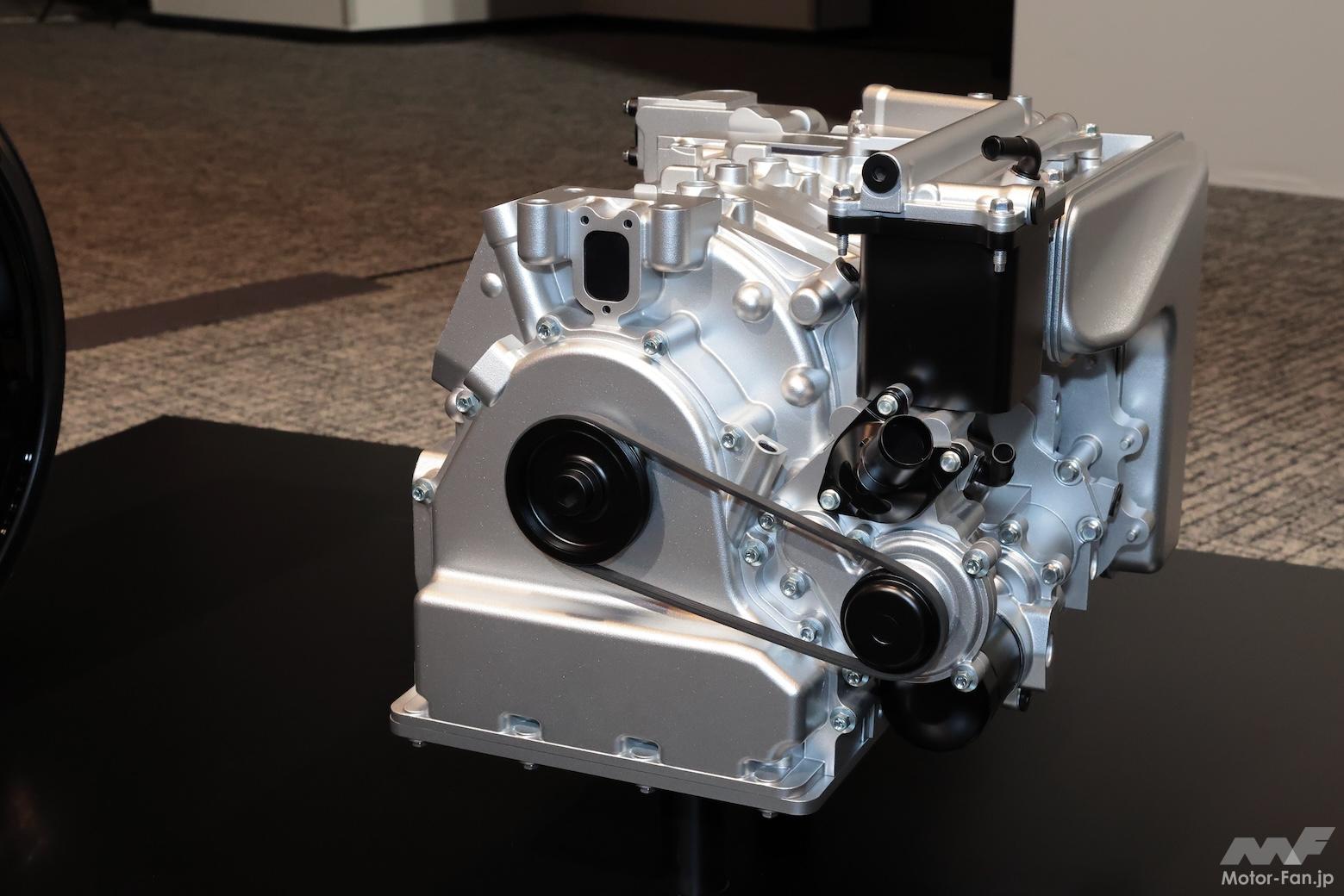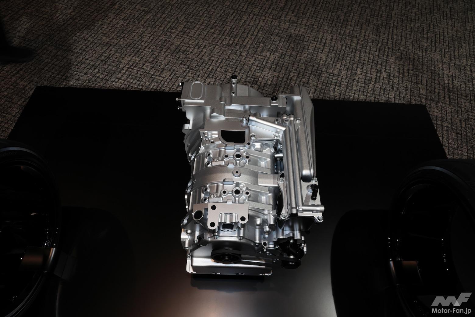 つまり、2 ROTORはスポーツカーへの搭載を視野に入れたコンセプトと読み取ることが可能。となると、2023年のジャパンモビリティショーで展示されたコンパクトスポーツカーコンセプトのアイコニックSPに搭載されるパワーユニットかと想像したくなるが……。