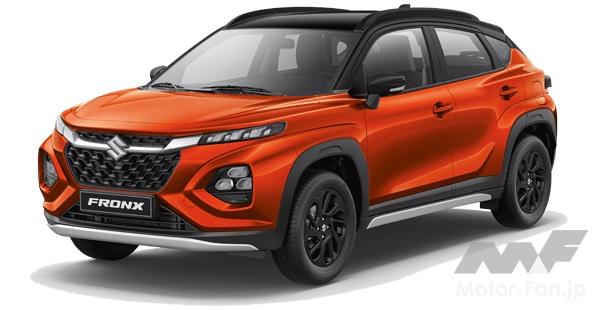展示されたホワイトボディはスズキ・フロンクス(FRONX)。2023年1月12日にインドで開催された「オートエキスポ2023」で発表されたマルチ・スズキ(・インディア)のブランニューSUV。インド市場を中心に南アフリカやチリなどの南半球エリアで販売されているモデルだ。