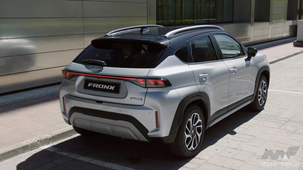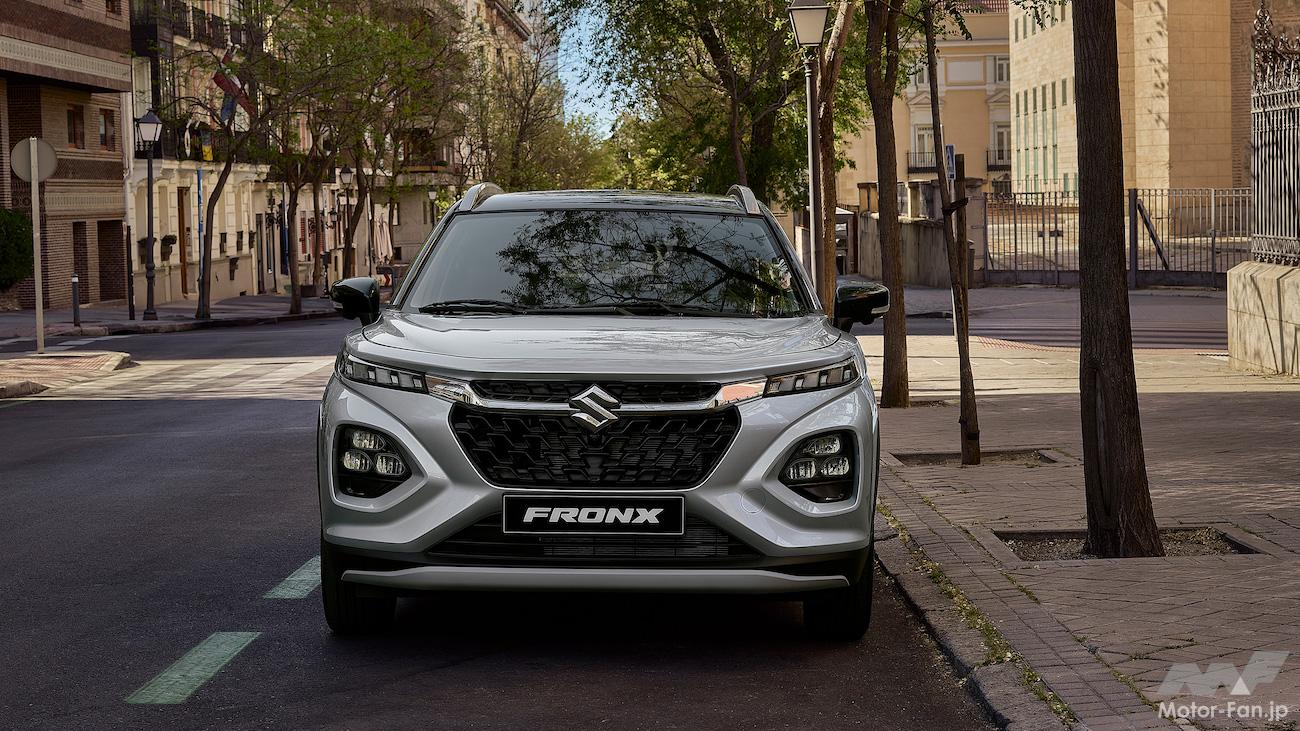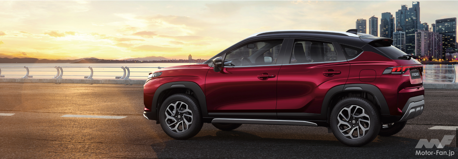 フロンクスは運転しやすいコンパクトなボディサイズに、力強く流麗なスタイルのクーペライクSUV。大胆で厚いフロントグリルと、側面への拡張を強調するフロントとリヤのデザインは、SUVのパワフルさと強い存在感を表現。後方に傾斜するダイナミックなクーペスタイルは、流れるような伸びやかなプロポーションを強調している。