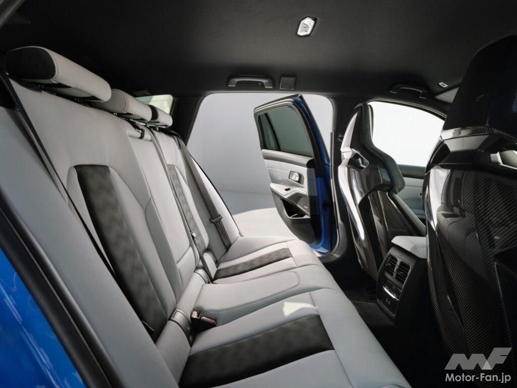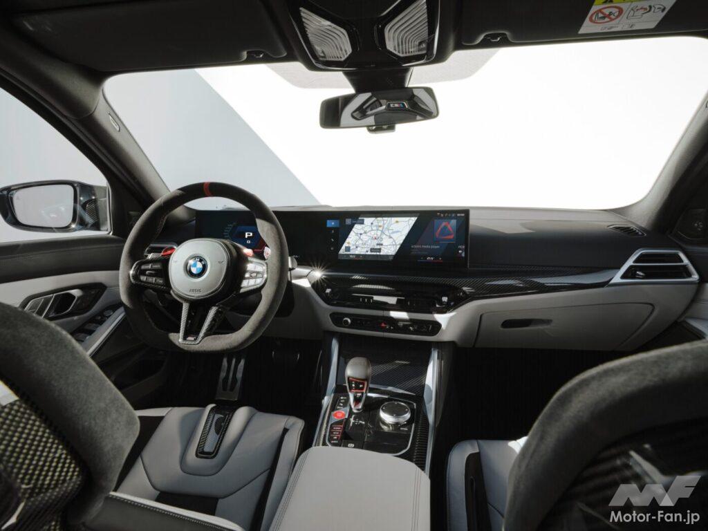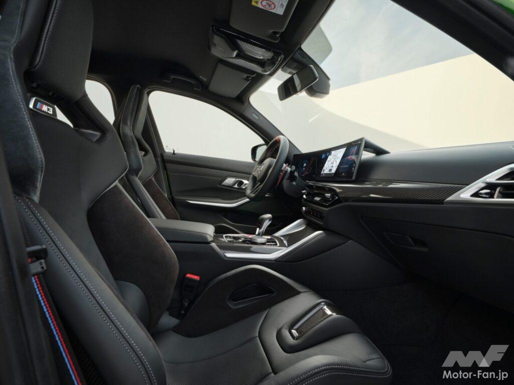 ドアを開けると、剝き出しのパフォーマンスポテンシャルを肌で感じることができる。新デザインの3本スポークMレザー・ステアリングホイールには車両設定用のふたつのMボタン、変速用パドルシフトが装備されている。標準装備のMスポーツシートは電動調整機能に対応。運転席のメモリー機能により、好みのポジションを記憶させることができる。運転席と助手席にはシートヒーターが標準装備され、オプションでベンチレーション機能も追加が可能だ。オプションのMカーボン・バケットシートも電動調整&ヒーター機能に対応しており、通常シートと比較して9.6kgの軽量化を実現している。