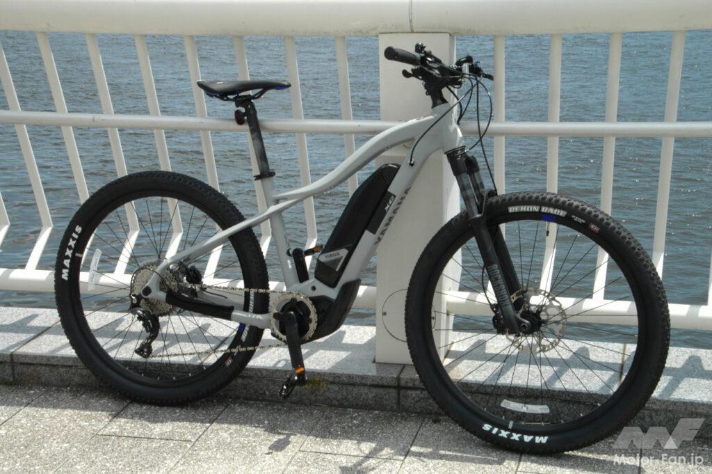 フルサスペンションと前後油圧ディスクブレーキを搭載したeMTB(マウンテンバイク)。ヤマハ最小・最軽量ドライブユニットPW-X3を採用したフラッグシップモデル。本格的なMTBなのでギアの段数も多く、アシストなしでも試乗コースはスイスイ走れた。