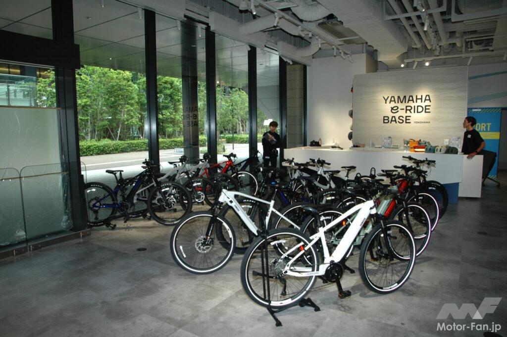 eBikeが展示される試乗受付エリア。ここで試乗を申し込み、eBikeで横浜の街に出発する。一角にはメンテナンススペースが併設されており、試乗車の整備の様子を見ることもできるようだ。試乗の詳細については後ほど紹介する。