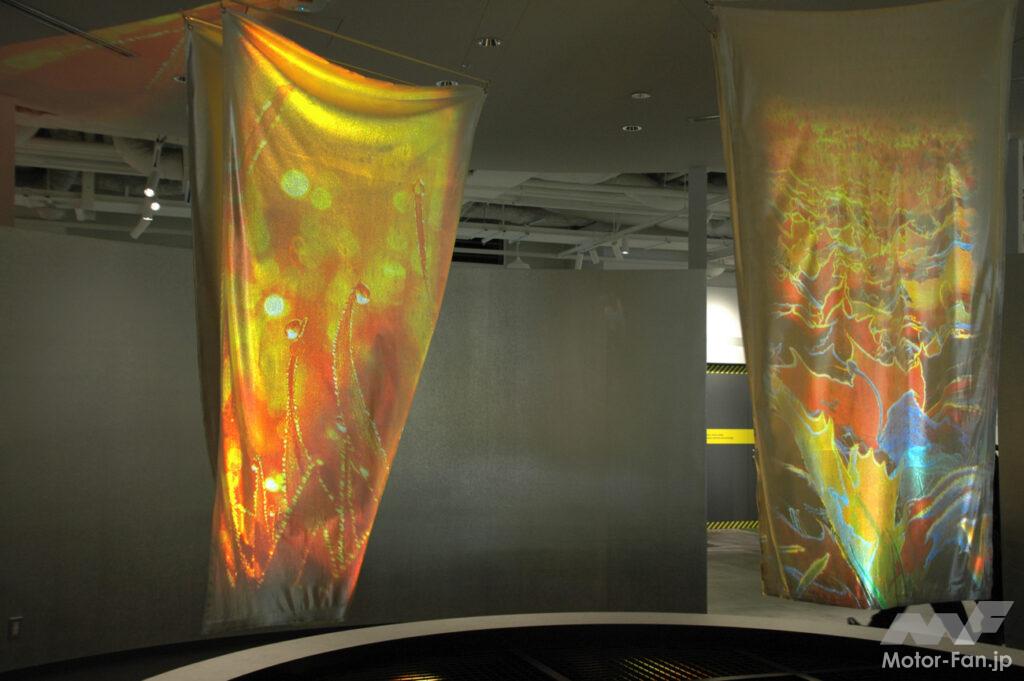YAMAHA e-RIDE BASEはまだ正式オープン前ということもあり、表からは何の施設かはよくわからない状況ではあったが、入り口をくぐると森をイメージさせる装飾がある「00 FOREST」エリア、その先のエントランス「01 WORLD」にはやはり四季折々の自然をイメージさせる不思議な演出が施されていた。
