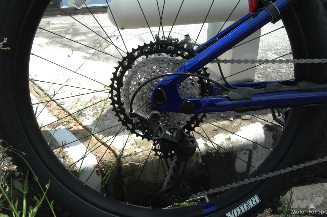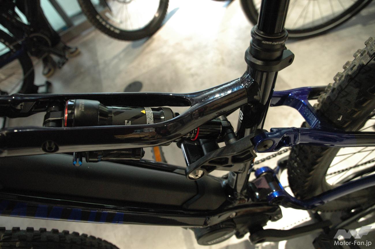 フルサスペンションと前後油圧ディスクブレーキを搭載したeMTB(マウンテンバイク)。ヤマハ最小・最軽量ドライブユニットPW-X3を採用したフラッグシップモデル。本格的なMTBなのでギアの段数も多く、アシストなしでも試乗コースはスイスイ走れた。