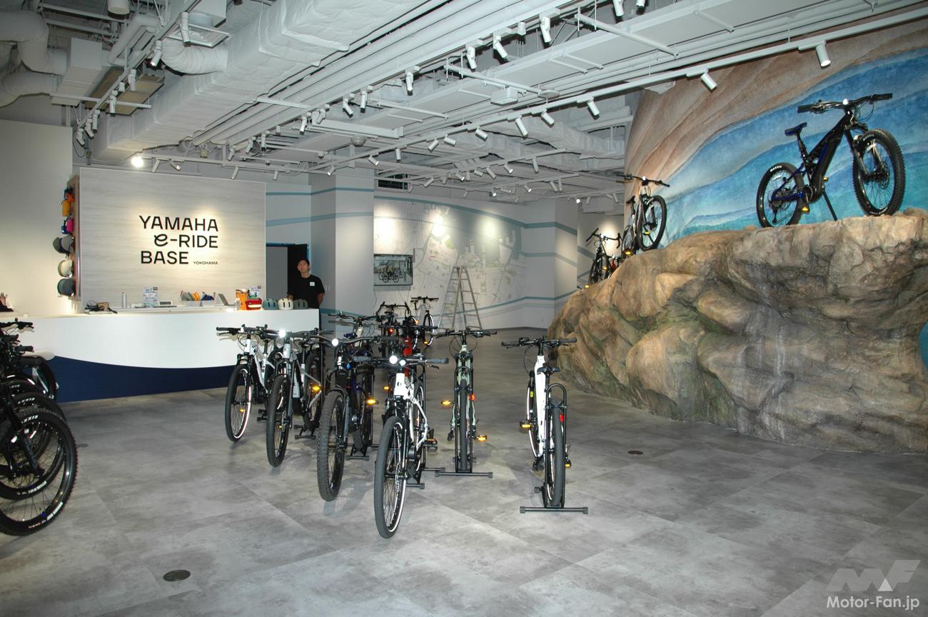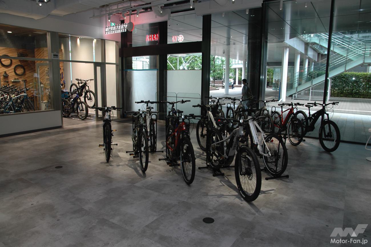 eBikeが展示される試乗受付エリア。ここで試乗を申し込み、eBikeで横浜の街に出発する。一角にはメンテナンススペースが併設されており、試乗車の整備の様子を見ることもできるようだ。試乗の詳細については後ほど紹介する。
