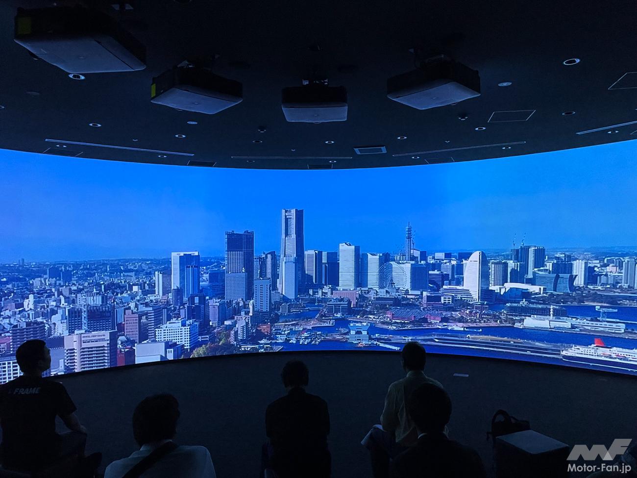半円形のシアタールームとなっており、ヤマハのモビリティをアピールする映像を大画面で見ることができる。特にこのYAMAHA e-RIDE BASEのメインコンテンツであるeBikeのプロモーション映像は、視聴者にeBikeへの興味を掻き立てる。