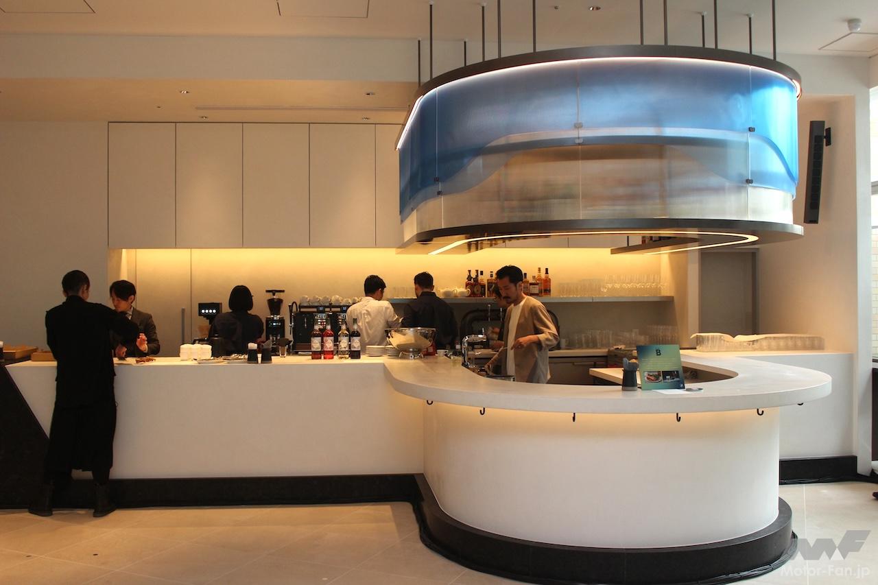 1階には、カフェバーも設置され、北米と中国に続き、日本初導入となるアパレルの物販スペースも用意されている。カフェバーでは、日本とドイツの食文化が味わえるメニュー、ドリンクが揃い、季節に応じて料理が楽しめる。