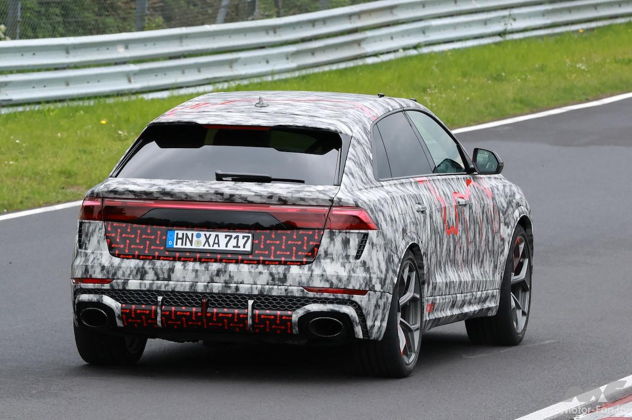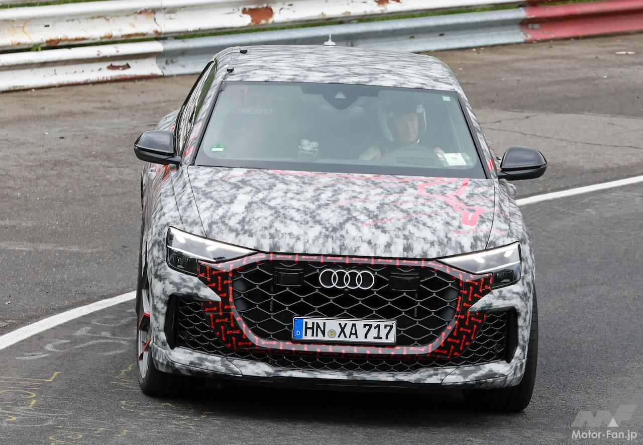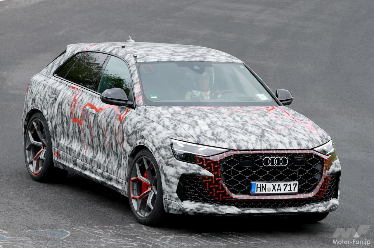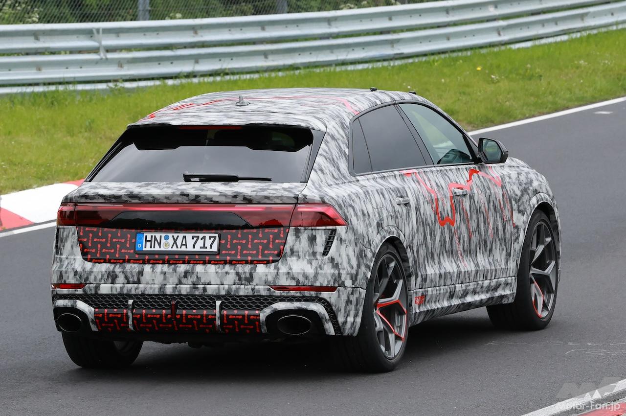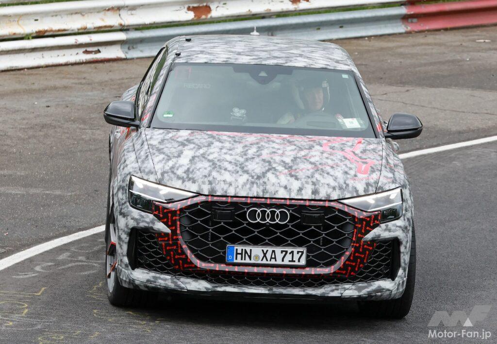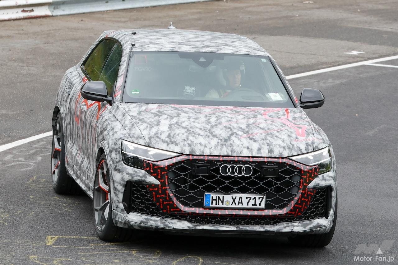 ニュル高速テストで捉えたプロトタイプは、ボディにカモフラージュラッピングはあるものの、ディテールはほぼ露出、スリムなLEDデイタイムランニングライトを備えた新ヘッドライトが確認でき、新設計されたグリルとよりスポーティーなバンパーを備えている。グリルの輪郭にはボディの一部が牙のように食い込み、エアインテークにメッシュパターン装備するなど、Q8やSQ8と比較して迫力が増している。