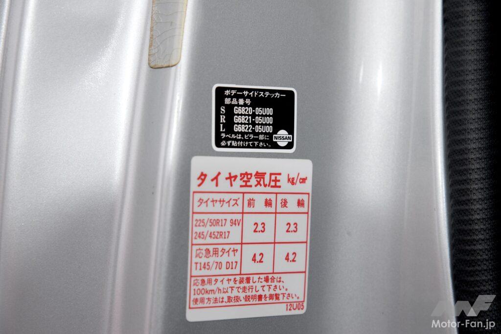 購入時にオプション装備を複数選んだ小嶋さん。ストラットタワーバーやフットレストのほか、運転席左右に加えるニーパッドなどを選んでいる。なかでも珍しいのがボディサイドに貼られたステッカー。GTが白地でRが赤く描かれたもので、あまりお目にかかる機会のないもの。こんな純正オプションがあったのですか?と聞けば、装着した個体にはドア内側のタイヤ空気圧指定ステッカーの上へ、「ボデーサイドステッカー部品番号」と記された日産のシールが追加して貼られるのだそうだ。これは初見だった。