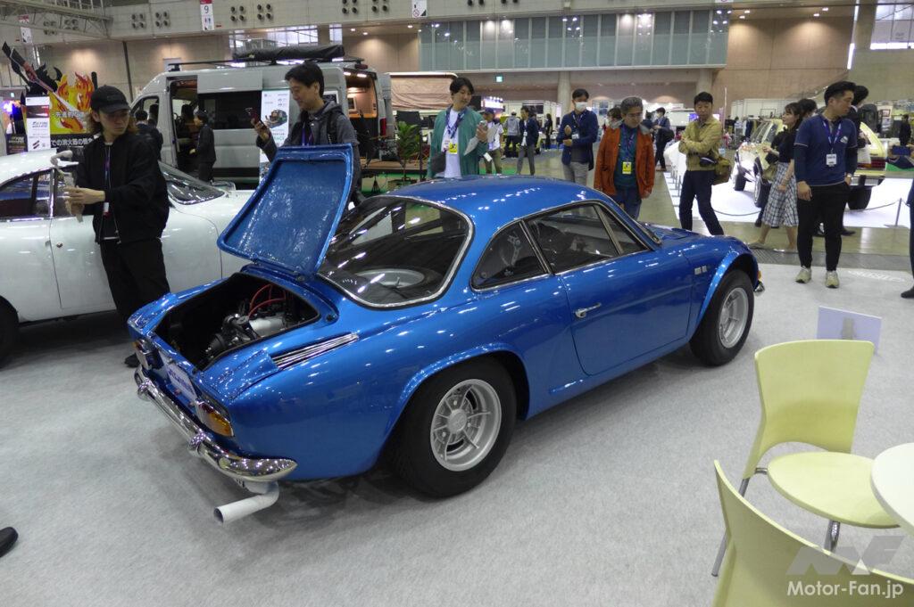 プジョーユーザーの駆け込み寺として知られる『原工房』のブースで、社長の原誠二さんにお茶をごちそうになった筆者と樹崎さんは再び会場を散策する。すると、原工房からすぐ近く、『ジロン自動車』のブースで初代アルピーヌA110を発見した。ジロン自動車は大阪に拠点を構える輸入車の老舗ディーラーで、フィアットやアバルト、ロータス、モーガンなどの新車販売のほか、厳選したヘリテージカーの販売も行っている。