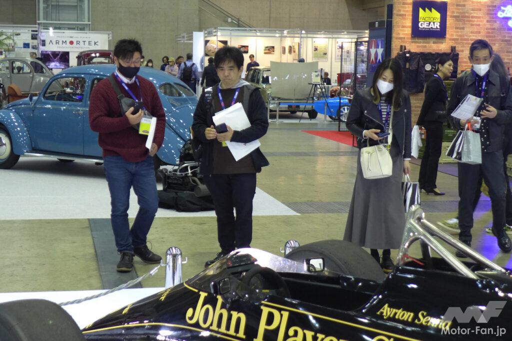 続いて、新車と見間違えるほどのコンディションのアルファスッド・スプリント・ヴェローチェとランボルギーニ・カウンタックLP400Sを展示するガレージ伊太利亜のブースの脇を抜けて、主催者展示のアイルトン・セナ展を見るため会場中心へと歩みを進める。