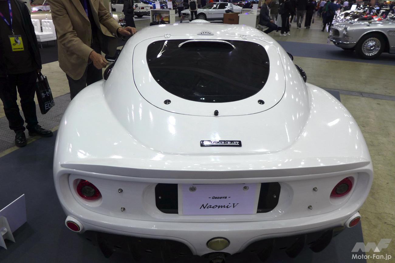 「わかった! NB型ロードスターのカスタムカーだ!」。マシンの近くにいたスタッフに詳しく話を聞くと、このブースは神奈川県厚木市に店を構えるTAILORで、展示されている車両はロードスターをベースにしたNAOMI(ナオミ)とのこと。車名の由来はデザイナーの奥様の名前から命名したそうだ。