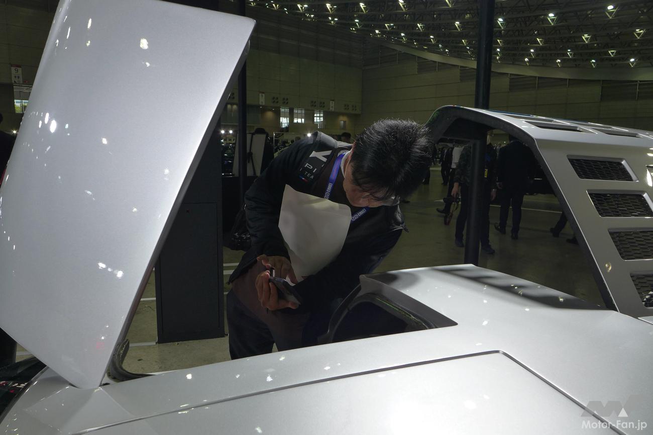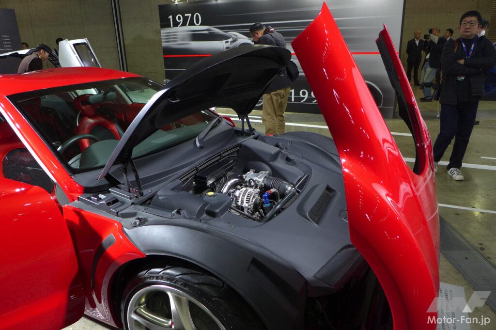駆け足だがこれでひと通り会場を見て回ったことになる。あと見ていないのはミニカーやカーグッズなどの物販ブースだけだ。何か掘り出しものでもないかと店舗が立ち並ぶエリアに向かおうとしたところ、アイルトン・セナ展からそう遠くない場所に1台の見慣れないスポーツカーが展示されているのに筆者は気がついた。