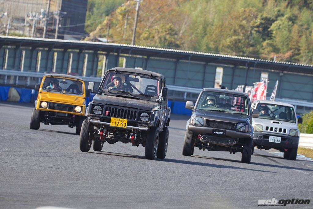 走行クラスは純粋にタイムを狙うスーパーラップクラスと、まずはサーキットの楽しさを体験したいという人が中心のビギナークラスで構成。走行車両は2サイクルのSJ30から現行のJB64W/74Wまで様々で、トップクラスのタイムは56秒台とかなりハイレベルだった。