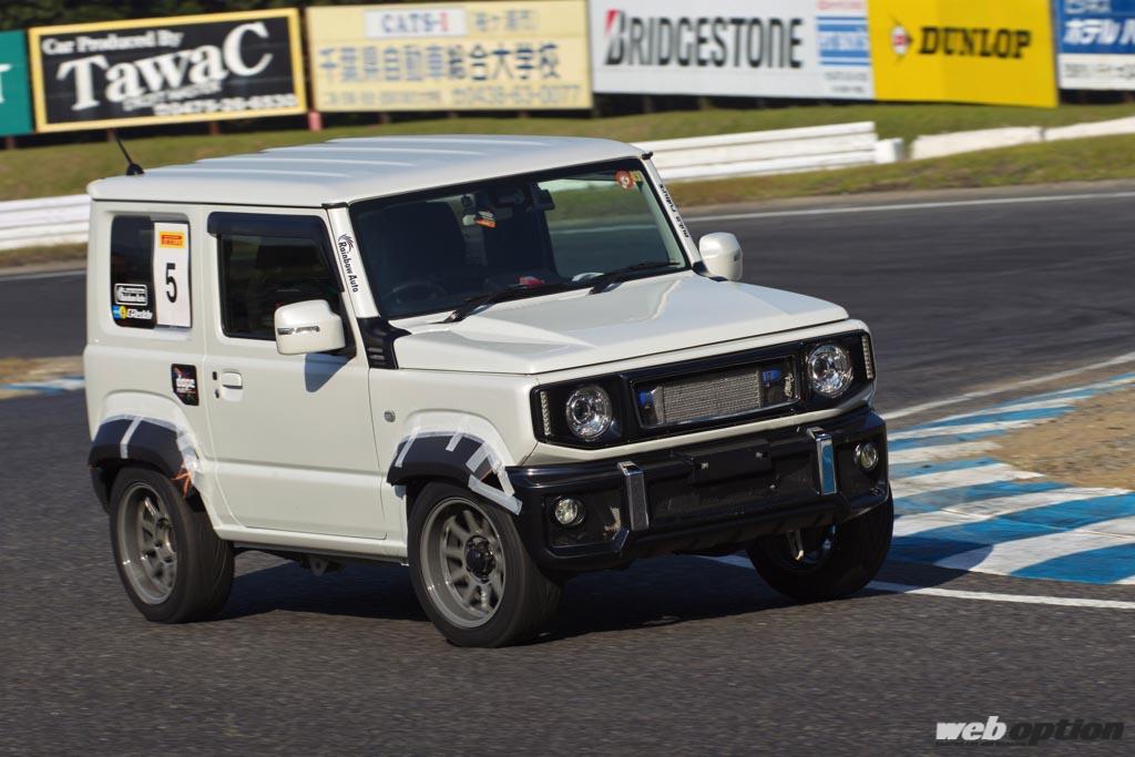 基本的には純然たる走行会なのだが、イベントコンテンツとして横尾代表がステアリングを握る快速デモカー(JB64とJB23)の助手席体験走行も実施。本来は、この他にショップデモカーによるレースやパドック内でのオフ会なども開催しているのだが、今回は新型コロナ感染防止のため中止にしたそうだ。