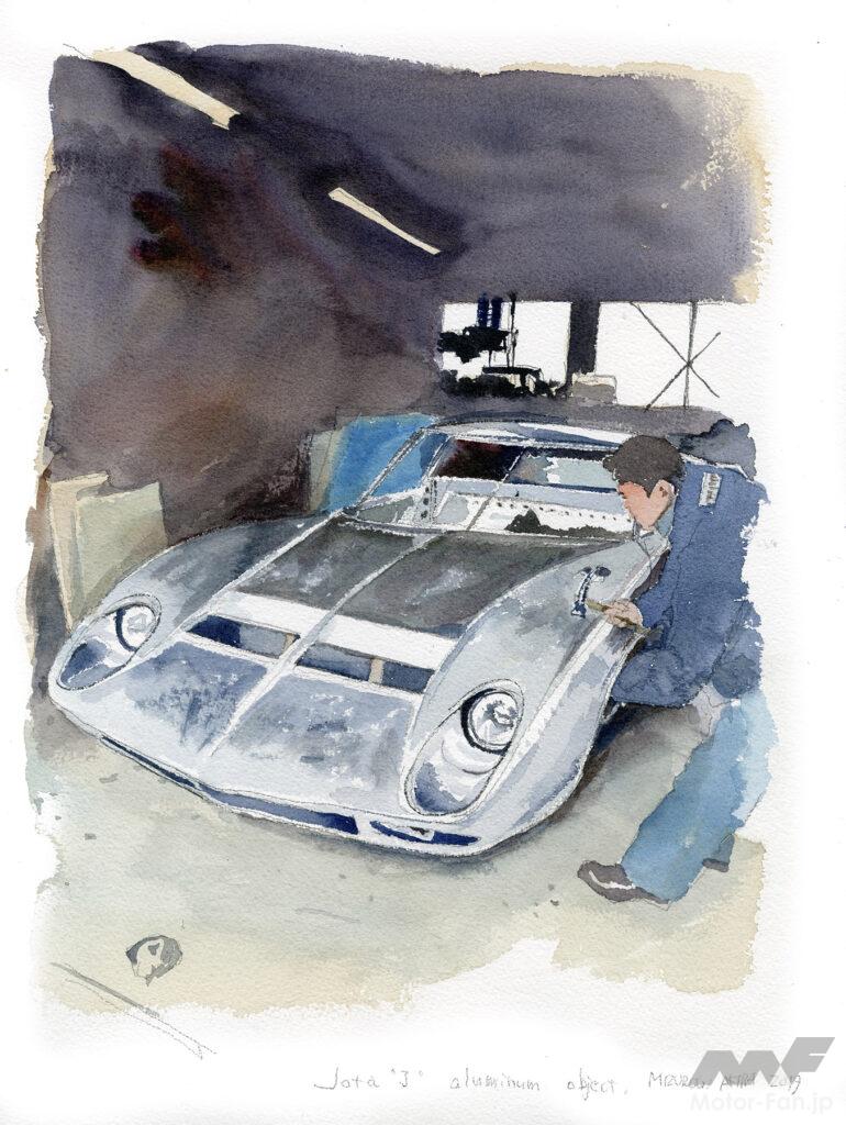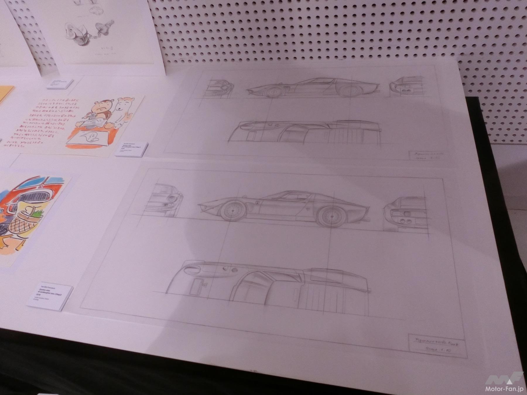 これは、壊れたイオタJのエンジンがミウラSVに移植され、今なお生き続けているという実話を参考にしたストーリーなのです。やがて秋田犬のジージー(赤間さんをキャラクター化)やニホンザルのユウジ(同じく綿引さん)、協力するデザイナーのキジのフランチェスコも登場し、賑やかに話が進んでいくという、今回の実際のプロジェクトを交えた話になるところで、現在進行形の第一巻は完成しました。