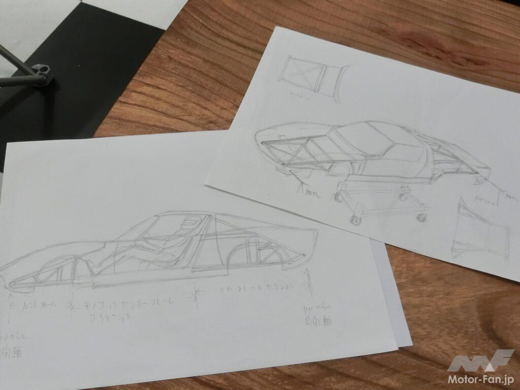 「ミウラの均整の取れた美しさとは違うんですよね。ツギハギでリベットだらけで口は尖って上を向いているし、お尻は角張って張り出してピンと上を向いている。なにかバランスを壊した凄みがある」とボクが絵に描いて説明している際、「どこかアヒルみたいな口で」とのボクの言葉に、赤間さんが「絵本はどうかな? 子どもたちに知ってもらうには、クルマだけじゃ伝わらないんですよ」と。